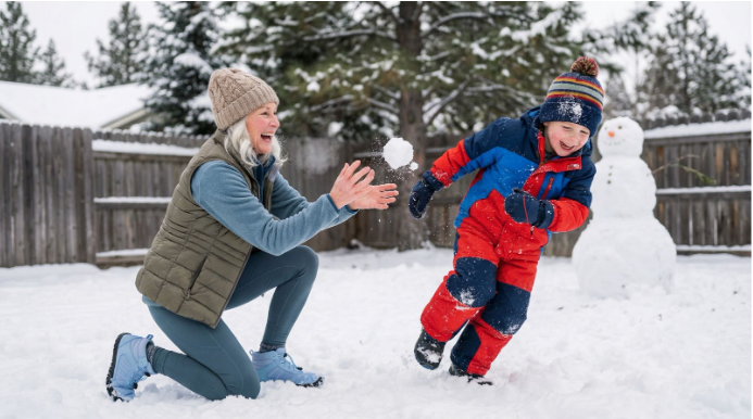 "Mom! Grandma played in the SNOW with me!"